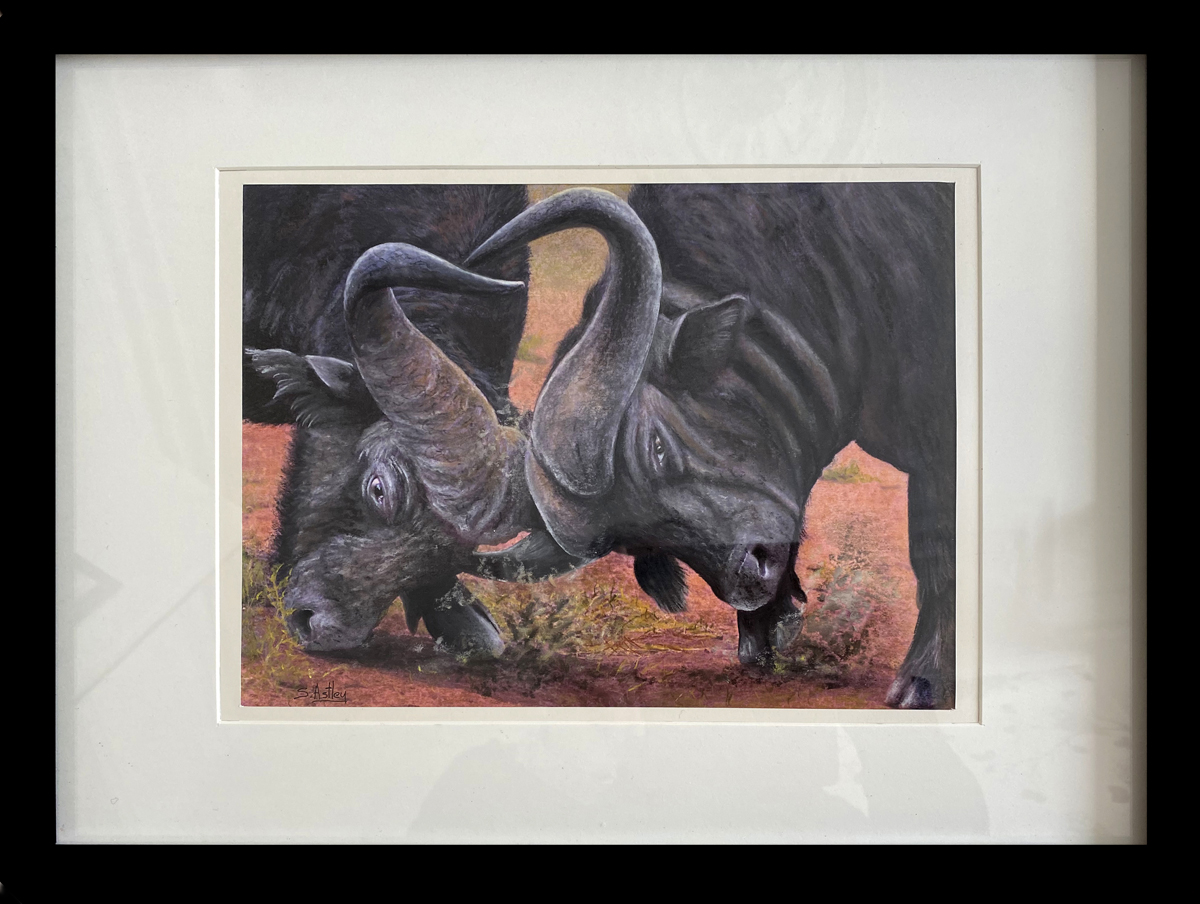 African Buffalo with horns locked